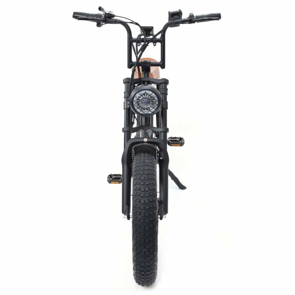 - All-Terrain Capability: The 20 x 4-inch fat tires and front suspension provide excellent stability and traction on a variety of surfaces, including gravel, mud, and light trails.